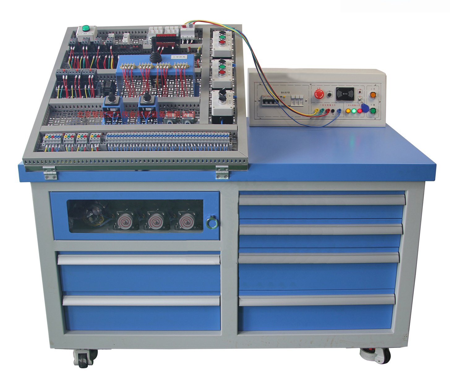 實訓裝置主要由實訓桌、智能電源控制屏、電氣網孔板、電器元件與電氣線路檢測系統等組成。