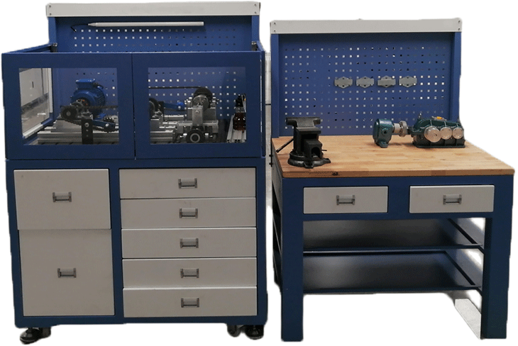 5.設有存儲柜,用于機械傳動零部件、工量具、資料等的儲存;底部采用工業腳輪,單輪承重不小于500kg。
