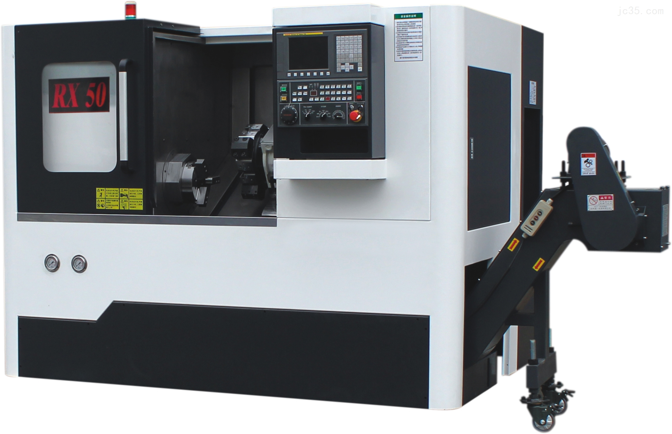 LGX-RX50型 高精度斜床身數控車床雙坐標兩軸聯動,半閉環控制數控車床。主機采用整體45°斜床身結構布置,高精度直線導軌,滾珠絲杠驅動。動態特性好,精度高,剛性強。防護采用全封閉防護,標配自動排屑器,排屑性能好。