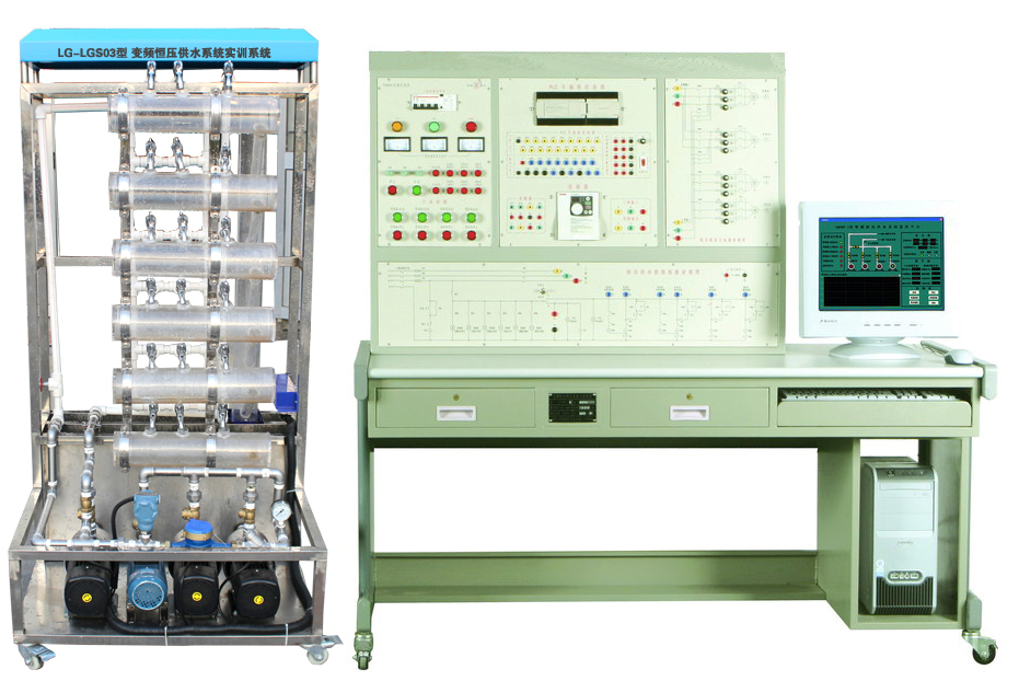 “LG-LGS03型 變頻恒壓供水系統實訓裝置”集PLC、變頻調速、過程控制、工程組態技術于一體。它由六層住宅消防、生活供水系統(實物模型),控制平臺兩大部分組成,包含了可編程控制器、變頻器、變頻磁力驅動泵、休眠泵、消防泵、壓力變送器、壓力儀表、輸水管道、消防栓、家用水龍頭、蓄水池等工程設備。控制平臺采用PLC+變頻器的開放式控制結構,可以完成多種模式下的樓層恒壓供水實訓實訓,為教學研究變頻恒壓供水技術提供一個開放的操作平臺。它是一款適合于大學及中、高職院校電氣自動化、樓宇自動化、建筑電氣、智能建筑等專業的綜合型實訓設備。