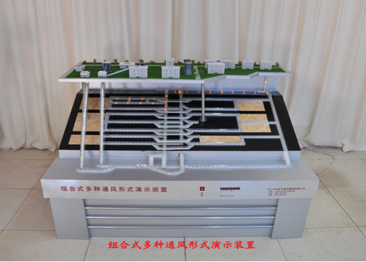 該煤礦礦井通風綜合演示裝置(適合于二、三、四級),由井上下兩部分構成,地面示意現代化礦井的工業廣場;井下利用發光管直觀顯示U+L、U、W、Y、雙Z型、Z型等多種采煤工作面的通風型式。使學員進一步了解各種采煤工作面的通風及安全設施。