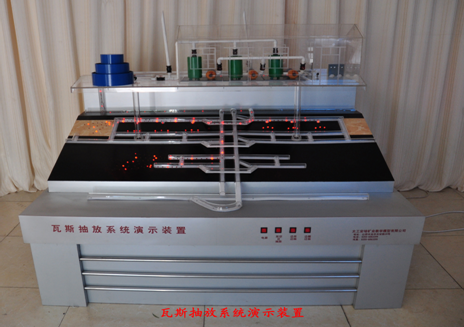 該瓦斯抽放實驗裝置(適合于一、二、三、四級),反映了煤礦地面抽放系統(tǒng),井下移動抽放系統(tǒng)的布置方式及運行方式。顯示不同的抽放方法。