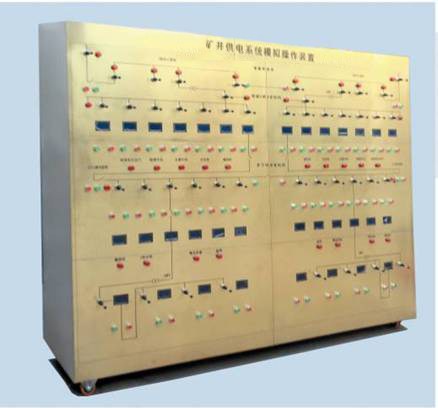 該裝置全部按照真實的線路模擬設計,每條線路都由學員親手連接而成,系統中主要開關元件為開關和斷路器,相應的系統圖上的各開關操作元件和斷路器元件都嵌入系統圖的相應位置,其通斷有相應的漢字指示,漢字顯示器分別顯示模擬電壓、模擬防爆開關的合閘和分閘;每條供電支路都有相應的負載指示,使學員更好的了解和熟悉礦井供電系統。