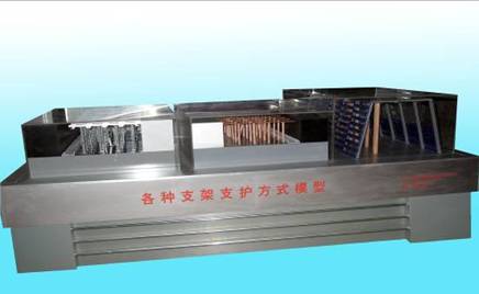LG-MZJ01型 煤礦井下支護實驗演示裝置按實物縮小一定比例制作,形象體現真實支柱、支架結構,讓學員掌握了各類型支柱、支架支護方式、操作方式及應用地點和技術特征等知識。