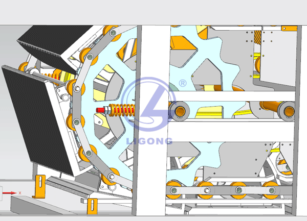采用彈簧式張緊裝置,使梯級鏈條始終保持張緊狀態,及時抵消在可控范圍內因梯級伸長而造成梯級(踏板)等相關部件的偏離、晃蕩、沖撞與噪聲。本裝置全部采用鋁合金板材制作。