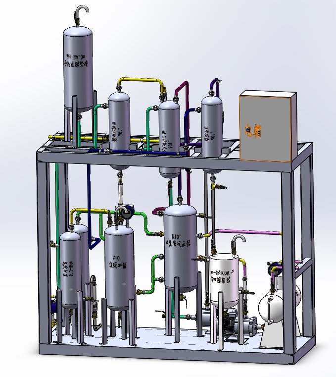 一、裝置特色 本套系統由鋼制安裝框架、電解槽、預熱器、仿真儀表、就地計算機操作臺、、就地智能儀表控制上位監控軟件、外置配套設備等組成,工藝路線簡潔清晰...