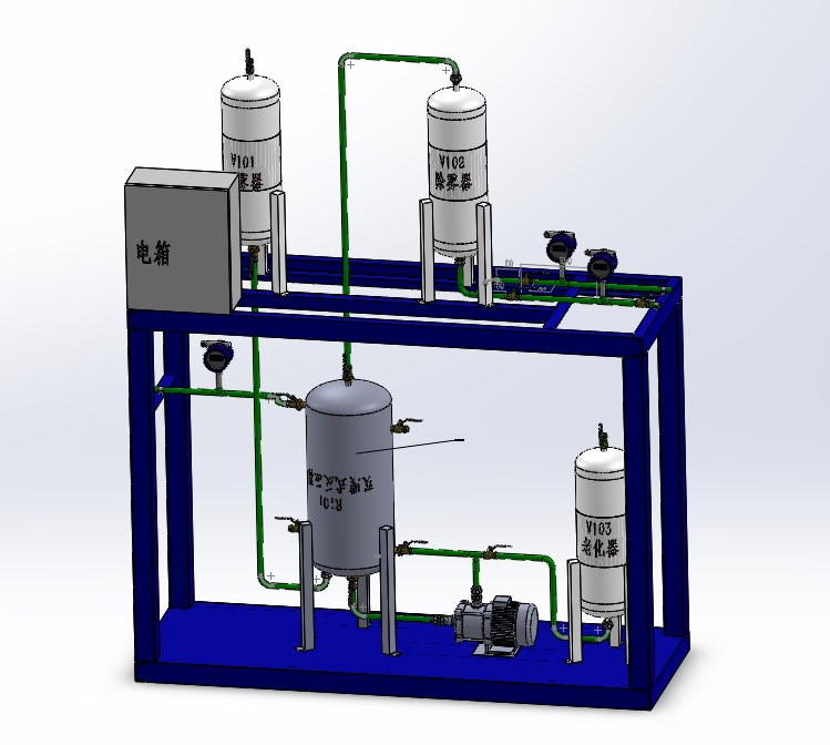 一、裝置特色 整套裝置由鋼制安裝框架、反應器、冷凝器、輸送泵、仿真儀表、就地計算機操作臺、就地智能儀表控制上位監控軟件、外置配套設備等組成,工藝路線簡...
