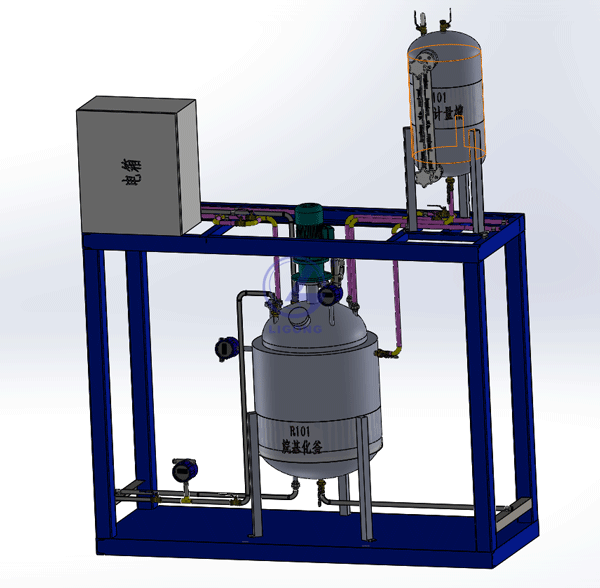 一、裝置特色 整套裝置由鋼制安裝框架、苯胺計量槽、亞硝酸鈉計量槽、冷凝器、重氮釜、仿真儀表、就地計算機操作臺、、就地智能儀表控制上位監控軟件、外置配套...