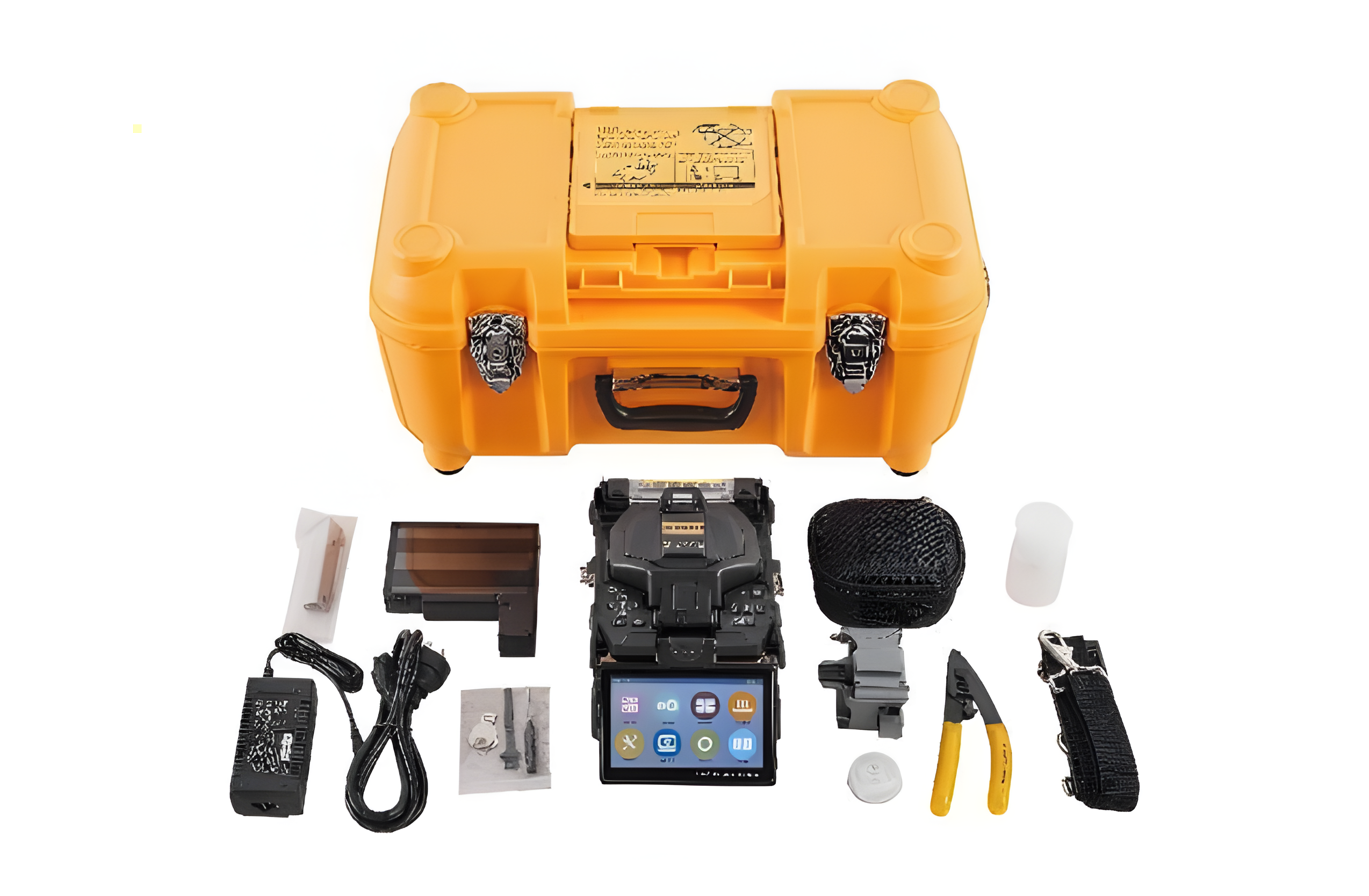 一、產品配置 1、尺寸:長145mmx寬165mmx高145mm。 2、重量:約1.965KG。 3、配置:硬攜帶箱1個,熔接機主機1個,光纖切割刀1把,電池1塊,適配器1個,備用電極1對,電源線...