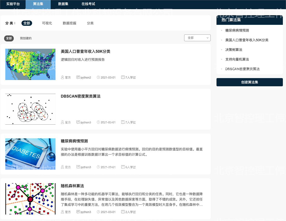 人工智能實訓課程資源共計200多個,資源涵蓋了操作系統類、數據庫類、編程語言類、統計分析類、機器學習類、神經網絡與深度學習類、自然語言處理類、機器視覺類、智能硬件類課程等諸多方面課程,課程類型包括基礎實訓、關鍵技術掌握、應用創新等,是一個綜合性的學習研究平臺;平臺配合專用的資源監控系統、課程監控系統,可實時的監控整個平臺的硬件資源負載以及學生學習的狀態,可幫助教師合理的安排課程及對應資源。