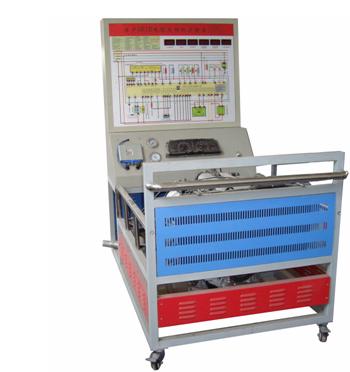 日產SR18電控汽油發動機總成、原車發動機控制電腦、組合儀表、發動機起動運行所有相關的原車附件、故障設置和排除系統、原車電路原理圖板及檢測端子、60AH大容量蓄電池、大容量不銹鋼油箱、發動機加速機構、控制面板柜、可移動臺架、臺架電源總開關、OBD診斷座、散熱系統、任務驅動教學模式的實訓指導書及臺架操作說明書。各傳感器及執行器安裝數字顯示表、臺架安裝燃油壓力表與真空表、帶鎖止萬向的腳輪、不銹鋼護手、臺架高溫及轉動等部位加裝防護裝置。