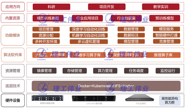 人工智能底層支撐平臺(tái)為一套人工智能底層資源管理系統(tǒng),面向深度學(xué)習(xí)計(jì)算集群,需具備科研教學(xué)一體化,容器化架構(gòu)。支持CPU/GPU異構(gòu)計(jì)算分布式集群,科研數(shù)據(jù)管理服務(wù),代碼和項(xiàng)目文檔管理服務(wù),鏡像管理以及可視化展示等特點(diǎn)。可以支持多種深度學(xué)習(xí)框架,能夠快速部署深度學(xué)習(xí)開(kāi)發(fā)、訓(xùn)練、預(yù)測(cè)環(huán)境,全面管理深度學(xué)習(xí)任務(wù),為深度學(xué)習(xí)用戶提供高效易用的平臺(tái)。對(duì)計(jì)算集群的CPU及GPU資源進(jìn)行統(tǒng)一的管理、調(diào)度及監(jiān)控,有效的提高計(jì)算資源的利用率和生產(chǎn)率為深度學(xué)習(xí)用戶提供高效易用的平臺(tái)。