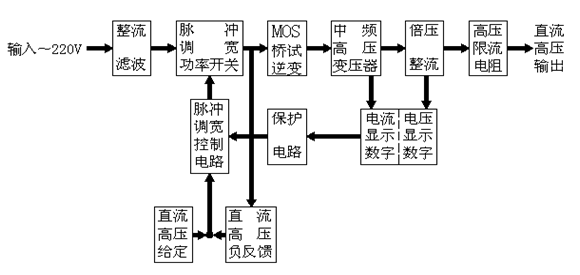 ●采用中頻倍壓電路,應用PWM脈寬調制技術和大功率IGBT器件。
